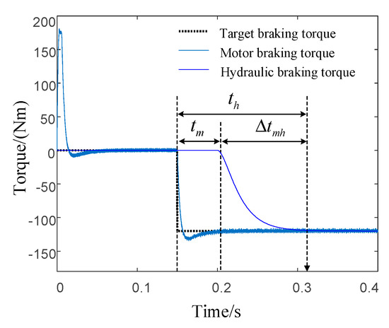 Because of the differences in dynamic response characteristics between the MBS and the HBS, the total braking torque fluctuates significantly during mode switching, which cannot meet the braking torque required by the driver, and may also lead to an increase in the jerk of the complete vehicle and the false trigger of the ABS braking, as shown in the simulation part of this study. So it is necessary to coordinate the motor braking torque and hydraulic braking torque in the process of mode switching, to ensure the stability of the braking torque during braking.