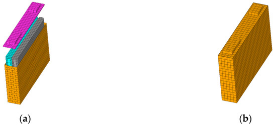 The finite element model of the prismatic cell: (a) The structure of the aluminum shell was considered; and (b) the structure of the aluminum shell was not considered.