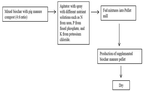 Diagram of processing the supplemented biochar manure pellets with different types of fertilizer.