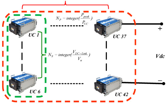 Considering six UC modules in each branch, the number of parallel branches and the total required UCs are equal to (18) and the UC bank arrangements in terms of required power is shown in Figure 11.