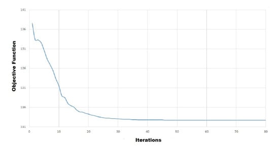 In Figure 8, the objective function behavior for system III during the iterative process is shown.