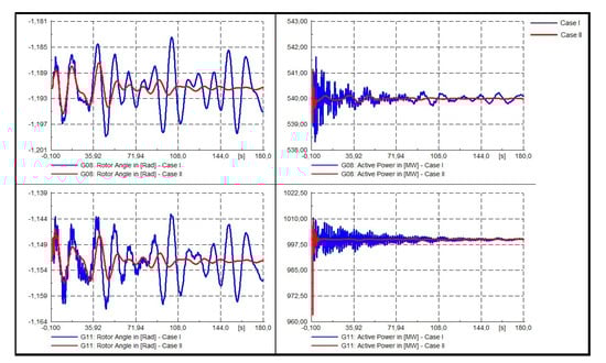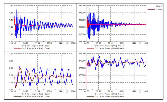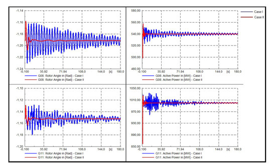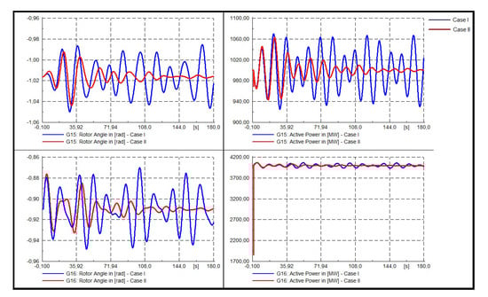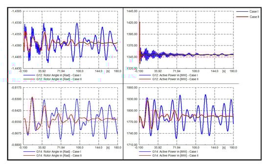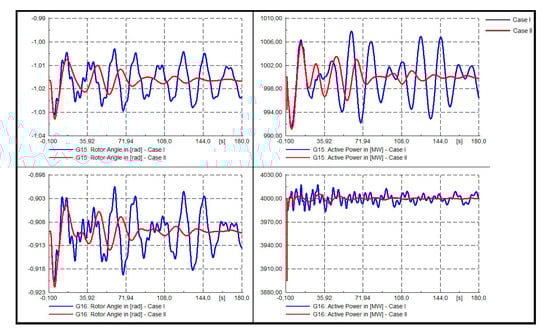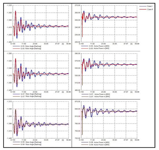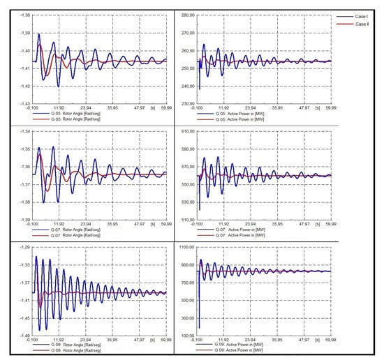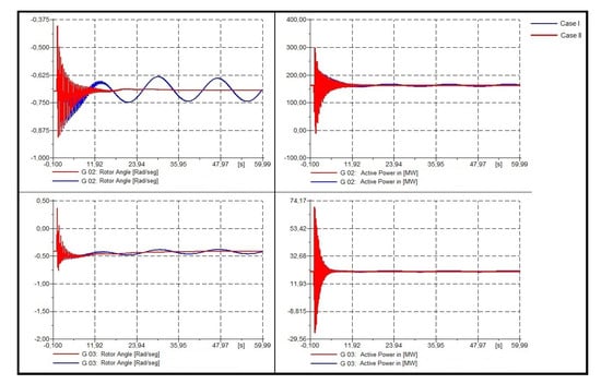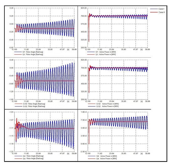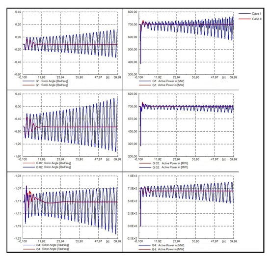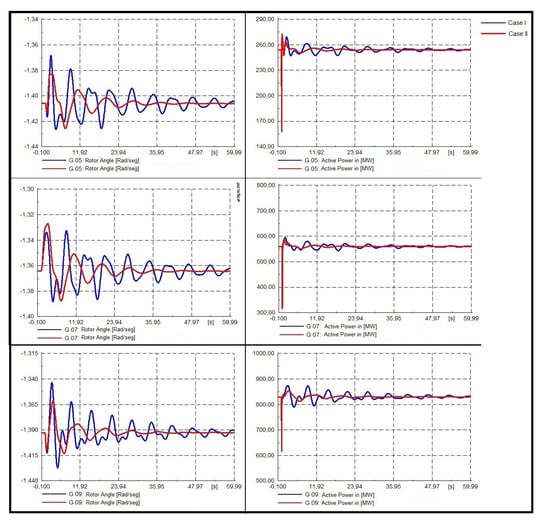 In order to validate the results of system II, case I was defined as the no-controller system, whereas case II was defined as a two-area system with four active and tuned PSS. For the validation of the results of system IV, case I was considered as the system described in [40], which considers only one PSS controller in generator 9. On the other hand, for case II a 16-machine with a PSS controller and the fitting proposed for this research was considered.