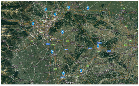 We used Piedmont region in Italy as the delivery destinations. There are 10 destinations in Figure 11 including a depot. The destinations of the delivery are limited to towns or cities in the province.
