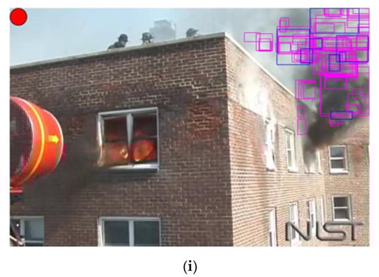 In the elaboration of Figure 2i and Figure 3b, the smoke alarm is activated while in Figure 3a,c the smoke alarm is not activated. This algorithm, different from [14,16,17,18,20,21], surrounds the smoke blobs and examines their bounding boxes evolution. This way, AdViSED can reach better performance in terms of accuracy of the alarm prediction.