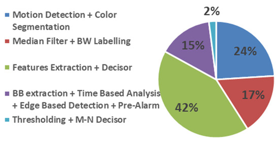 Hereafter, the paper is organized as follows. Section 2 deals with a detailed review of video-based smoke/fire measurements. Section 3 presents the new Advanced Video SmokE Detection (AdViSED) technique discussing the global architecture and then each of the algorithms used in the multiple video processing steps. Section 4 discusses the AdViSED thresholds configuration. Section 5 presents the evaluation of the complexity of the algorithm and the performance compared with the state of art systems. Implementation results of AdViSED in x86-based and ARM (Advanced RISC Machine)-based platforms are analyzed in Section 6. Conclusions are drawn in Section 7.