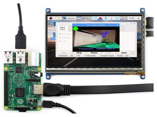 The AdViSED video-based measuring technique has been implemented on a single board embedded computer, a Raspberry Pi 3 model B (RPI), to test its performance in a real-world scenario. Raspberry Pi in Figure 9 is small, powerful, and low cost at about 30 USD per unit. To this end, it is a perfect platform for applications like distributed and networked measuring notes in smart city or intelligent transport systems scenarios. The board is equipped with a Broadcom BCM2837, a System on Chip (SoC) including a 1.2 GHz 64-bit quad-core ARM Cortex-A53 processor, with a cache L2 of 512 KB and 1GB of DDR2 RAM, Video Core IV GPU, 4 USB 2.0 ports, onboard WiFi @2.4 GHz 802.11n, Bluetooth 4.1 Low Energy, 40 GPIO pins, and many other features [45]. It runs on Raspbian OS, a Debian-based Linux distribution for download [46]. The camera module used in the implementation is an RPI camera board v1.3 that plugs directly into the CSI (camera serial interface) connector on Raspberry Pi board. The module is able to deliver a 5 MP resolution image or 1080p HD video recording at 30 fps [47]. MATLAB “Run on Hardware” support package is adopted to generate C code from MATLAB algorithm and run it on hardware as a stand-alone application.