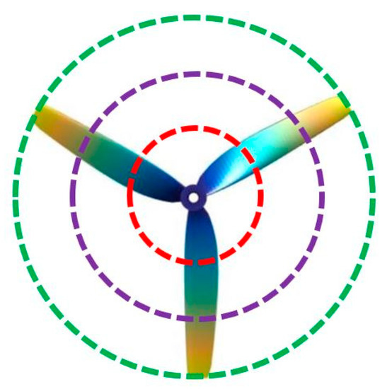 An illustration of a rotor area divided into three regions (inner circle, middle annulus, and outer annulus) along the radial direction.