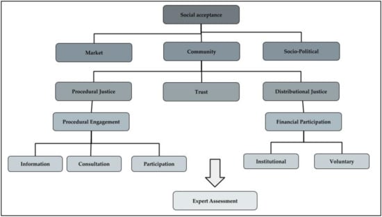 Social acceptance can be defined as the positive response related to a technical or sociotechnical transition—like the energy transition—by members of a given social unit [10]. A broadly used concept of social acceptance distinguish three different dimensions of the concept: market acceptance, socio-political acceptance and community acceptance [11,12]. Socio-political and community acceptance are important for understanding the discrepancy between general public support for renewable energy on the one hand and the decreasing acceptance of specific projects. The community dimension of social acceptance refers to the siting decisions and to renewable energy projects by local stakeholders and relates to community place-based identity [13]. This dimension is strongly influenced by three different factors: trust, procedural justice and distributional justice [14]. The element “trust” influences community acceptance by providing credible information and transparently conveying intentions of the investors [15]. Procedural justice and distributional justice have been introduced into the energy policy context through the concept of “energy justice” [16]. This concept relates to the intention of providing safe, affordable and sustainable energy to all. Procedural justice embodies the concept of fair and participative decision—making processes including three different levels of public engagement: information, consultation and participation [17]. Distributional justice mainly refers to the redistribution of costs and benefits to the population and could be achieved through institutionalized or voluntary actions and measures [16].