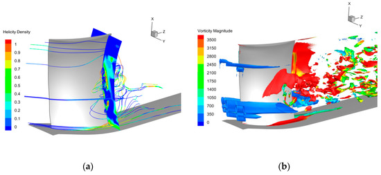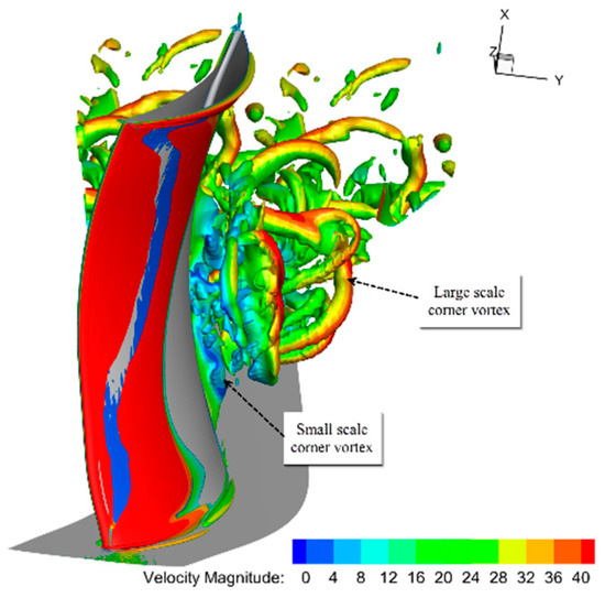 - Liu, Y.W.; Yan, H.; Lu, L.P.; Li, Q. Investigation of vortical structures and turbulence characteristics in corner separation in a linear compressor cascade using DDES. J. Fluids Eng. 2017, 139, 021107. [Google Scholar] [CrossRef]