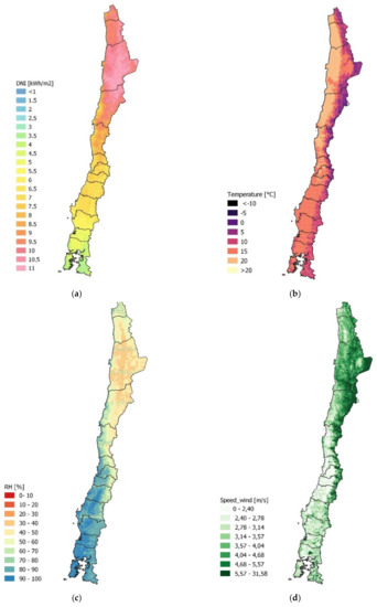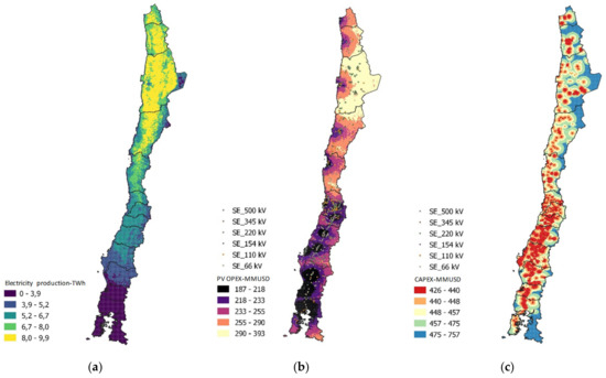 The Chilean national electric grid features lines of 500, 345, 220, 154, 110 and 66 kV, and the most common lines are 500, 220, 110 and 66 kV. A line with higher voltage reduces electrical losses but is more expensive. The model selects a connection between the CSP tower plant with a near substation optimizing the LCOE. The independent variables are distance and substation voltage. For example, in a specific location the models simulation found that the closest substation had 66 kV lines, although there was a 110 kV line in the next substation. By optimizing the LCOE, the model determined that a connection to the 110 kV line is more convenient, as the cost of construction of the 110 kV line (requiring longer distance and higher initial investment) does not exceed the energy losses of the 66 kV line.
