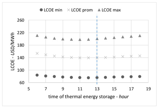 The LCOE represents the electricity generation cost during the entire lifetime of the power plant. This parameter is useful to compare different technologies in terms of economic viability. Equation (1) shows the mathematical expression for