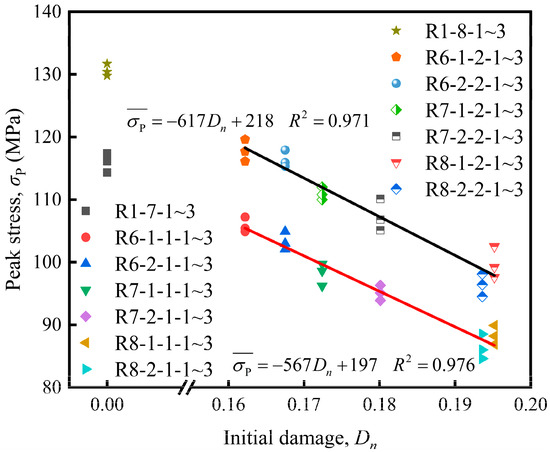The peak stress of rock specimen under different initial damage in the SHPB test.