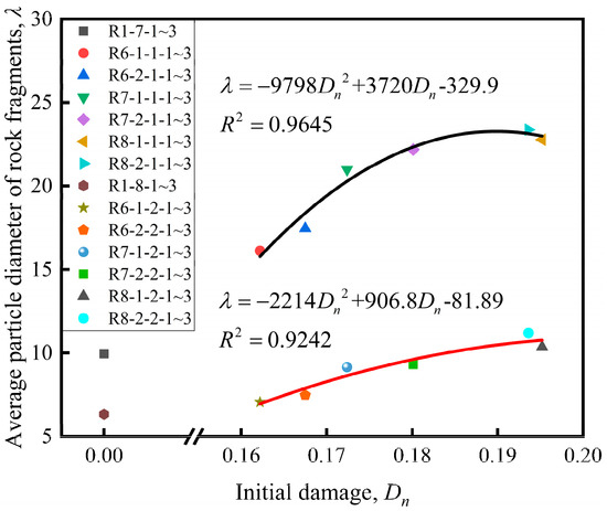 The average particle diameter of rock fragments under different initial damage conditions.