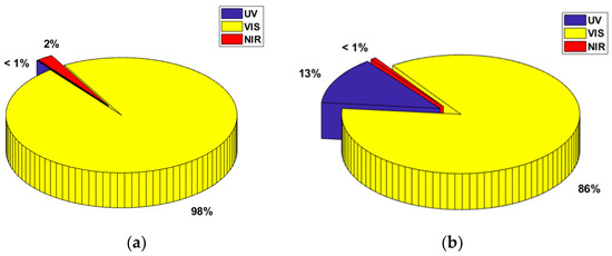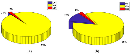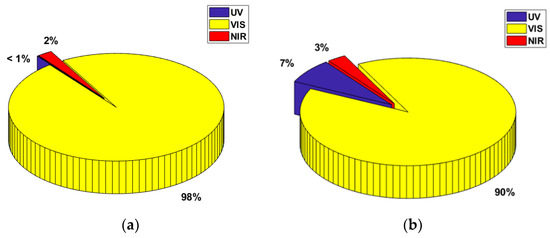 By comparing the obtained spectral characteristics in both analyzed electrode systems and for the same supply voltage level, significant differences in their shapes and spectral ranges can be observed. For the needle–needle electrode system, the spectral range is mainly in visible light, and a small extent in the near-infrared and ultraviolet range. In turn, the spectra obtained for the surface discharge system contained a higher proportion of ultraviolet radiation. This showed the potential possibility of using optical spectra analysis for the recognition of single-source forms of electrical discharges.