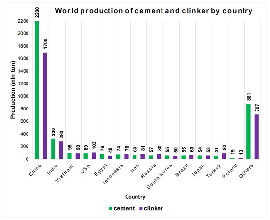 - heat energy consumption in the cement production process that occurs in China—16 EJ (Table 2).