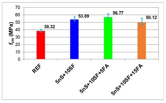 - Concretes containing fly ash and nanoadditives in the cement composition have very favourable strength parameters—30% to over 40% in relation to the values obtained for concrete without additives.