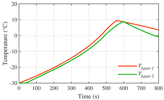 Modern Li-ion batteries exhibit an explosive feature at high temperatures. Therefore, a thermal emergency should be avoided to maintain the safety of the applications. Furthermore, many studies revealed that higher temperature leads to excessive ageing of the battery []. Conversely, low temperature also leads to many problems. It is reported that a commercial 18650 lithium-ion battery can only provide 5% of nominal energy with 1.25% of power capacity at -40 C where the nominal capacity is determined at 20 C []. Hence, the service quality of the battery-powered applications significantly deteriorates in low-temperature conditions. For example, the driving range of EVs significantly decreases in cold weather because the internal resistance of the batteries increases considerably at low temperature, and this results in heavy losses of energy and power capacity [,]. Additionally, lithium plating is a phenomenon wherein metallic lithium is formed around the anode of lithium-ion batteries during charging and is typically more prone to occur at low temperatures, thereby causing the rechargeable batteries to malfunction over time []. From a practical point of view, one of the major problems of the Li-ion battery to be handled in low temperature is that the cell is not able to provide sufficient power as required by the load. Thus, pre-heating plays an important role in practical perspectives.
