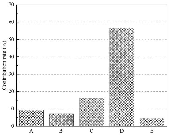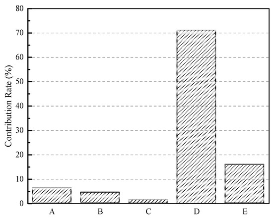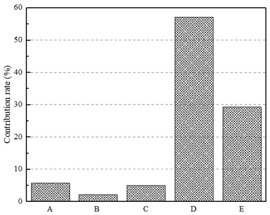 | Parameters | D.O.F. | Sum of Squares | Variance | F-Value | Contribution (%) |
