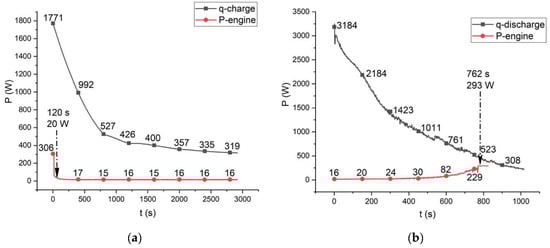 (a) Motor power and heat transfer rate during charging process, (b) motor power and heat transfer rate during discharging process.