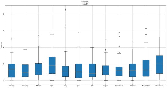 Another interesting measure of the performance of the proposed structure is the absolute percentage error monthly distribution along a full year, as shown in Figure 9.