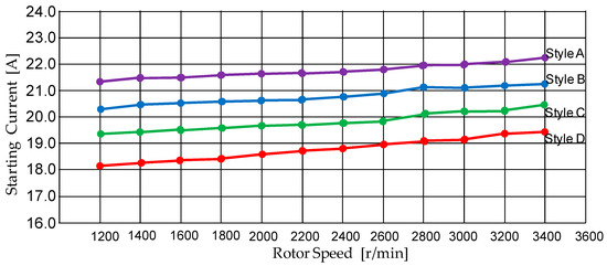 Poly-line graph of starting current for four kinds of SCSCRIMs under several speeds.