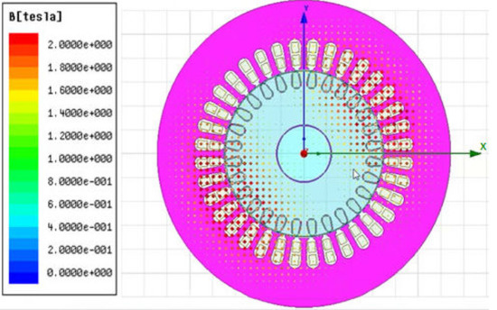 Flux density distribution of a SCSCRIM with full cross in Style D using the FEA method.