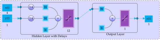 Table 1 lists the ANN settings for each type of renewable energy source, which has implemented in MATLAB using ntstool. The ANN was configured with 70%, 15%, and 15% of the data for training, adjustment, and validation processes, respectively. Figure 4 illiterates the ANN scheme for the wind power forecasting.