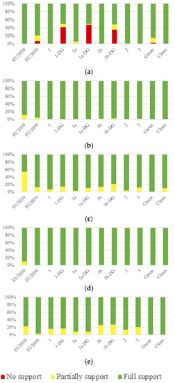wind variable’s value exceeds the limit of 6 s, then the wind power could only partially cover the requirement (Partially support). Also, when the wind power is not dispatched at all, inertia support is not possible (No support). In scenarios with higher solar installed capacities and less annual generation (1-DG, 1a-DG, 1b-DG), where solar production may almost fulfill the energy demand, full inertia support of wind power is limited. For instance, UCTE’s solar and wind power installed capacities correspond approximately to 95% and 80%, respectively, of the EU-28 countries’ total solar and wind power installed capacities. Therefore, there are cases where the considered solar production could cover the demand and wind power would not be dispatched, therefore inertia support is no possible.