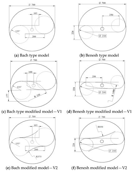 The blade gap and overlap ratio values are presented for each rotor model separately in Table 3. Geometric dimensions with respect to the rotor diameter and height are maintained at the same values for all rotor constructive types except the blade constructive form which is different for each rotor type [28,29,30].