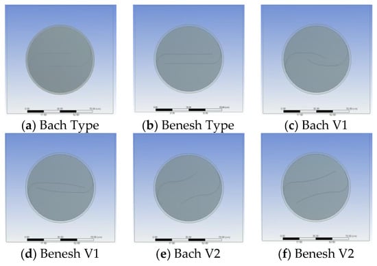 The study is based on numerical analysis on three-dimensional model for multiple rotor patterns: Classic Bach, Classic Benesh, Bach with concave blades (Bach V1), Bach with convex blades (Bach V2), Benesh with concave blades (Benesh V1), Benesh with convex blade (Benesh V2).