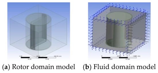 For the rotor domain (Figure 7a), rotational motion in relation to z-axis coordinates was adopted. The analysis performed was of a transient blade row type with an option for time period as passing period on the fluid field with the declared value for 1 s, the number of time steps per period of 10-time steps per period, time duration with option for number of single period per run.