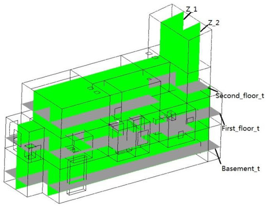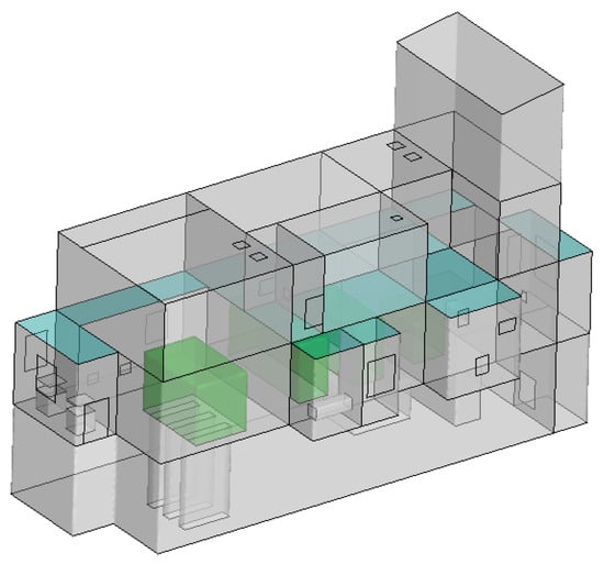 BIM is defined as an architectural engineering information model composed of complete and sufficient information to support new product development management; it can be directly interpreted by computer applications. BIM helps assess the efficiency of energy use in the design phase [40,41,42]. Combined with a professional energy simulation software, BIM can accurately simulate the mechanical, electrical, and plumbing pipeline and indoor climate control as well as provide different design choices and suggestions to enhance performance and efficiency of buildings. To adapt to different climate-related changes, considerable equipment is used to maintain the indoor climate. For sustainable designs, maintaining the climate change adaptability through passive design or intelligent devices is important. BIM can estimate the carbon footprint during concept design, which will not only provide a practical solution for future low-carbon cities but also confirm the feasibility of low-carbon design and identify the carbon reduction potential during the construction phase or implementation. In addition to the embodied carbon emissions, further control of carbon emissions is an issue we should focus on. Moreover, we must continue to perform carbon reduction actions until carbon neutrality is achieved for sustainable development. In this section, the MOPSO optimization result parameters of each inlet and outlet opening area of the substation in Section 2.2 are used to construct the ventilation structure of the substation building using BIM and the surrounding structure of the substation.