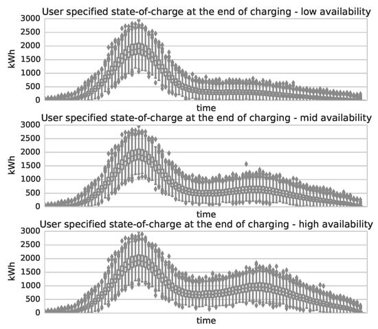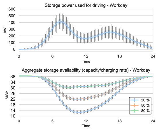 Figure 12 depicts the mean and the standard deviation of the state-of-charge trajectories in workday scenarios for a