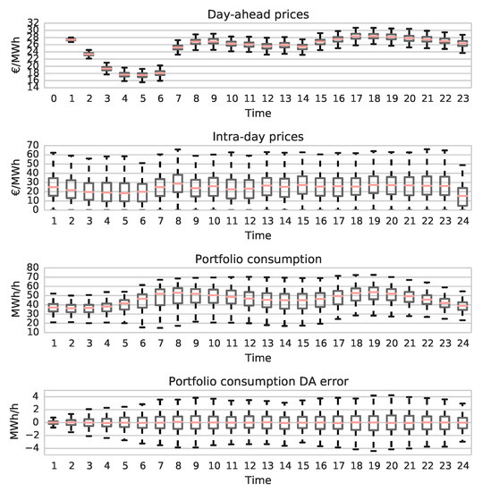 | the day ahead portfolio consumption/production forecast error, |