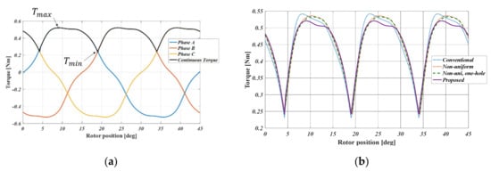- Liang, J.; Parsapour, A.; Moallem, M.; Fahimi, B.; Kiani, M. Torque Profile Optimization in Switched Reluctance Motor. In Proceedings of the 2019 IEEE 28th International Symposium on Industrial Electronics (ISIE), Vancouver, BC, Canada, 12–14 June 2019; pp. 414–419. [Google Scholar]