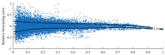 52]. Furthermore, a dependence of the distribution moments of the forecasting error on the forecast, a dependence of the forecasting error on itself, and a time-dependent variance of the forecasting error was determined. The dependencies properties can be categorized as follows: