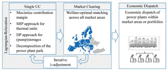 39]. In addition to the unit schedules, a price signal is also necessary in electricity market models to enable subsequent economic assessments. However, it is of crucial importance that modeled prices and modeled unit schedules are mutually coherent, i.e., that the resulting market signal can reflect the behavior of market participants without distortion. This requires detailed modeling of the causal relationships, so that, for example, the influence of start-up costs on electricity prices can be represented [