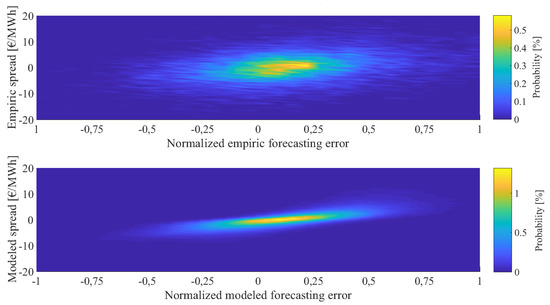 48], many price spreads cannot be explained by the forecasting error. However, in the presented model price spreads result exclusively from forecast variances. Although this relationship is not necessarily linear, the bivariate distribution in