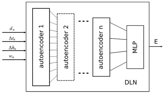 A deep learning network with autoencoders is proposed for modelling the energy consumption function (Equation (1)). Figure 6 shows the draft of the proposed solution.