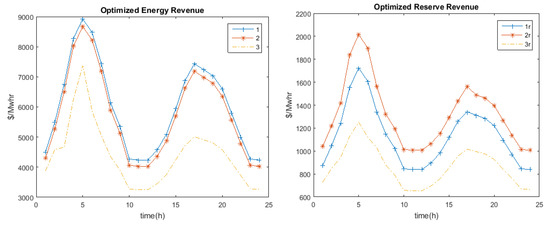 Figure 2 gives the optimized energy and reserve operating cost for 24 h. The operating costs were in direct proportion with the demand, as the hourly price bids were assumed to be the same for all market models.