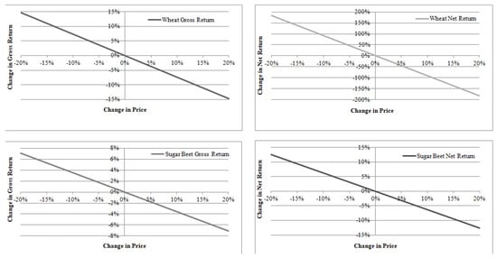 Changes in gross return and net return in wheat and sugar beet production depending on the change in the fertilizers’ prices.