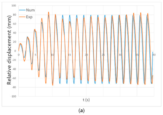 It can be seen from Figure 9 and Table 4 that there is a relatively good agreement between the trend of the numerical and experimental data. In general, the error between the numerical and experimental data is below 10% in absolute value, which can confirm the accuracy and suitability of the numerical approach. Anyway, since the viscous dissipation takes into account the potential viscous effects, there are lower errors expected when the wave period is 1.2 and 1.6 s due to the small period and the resonance period of the relative oscillation of the buoy in heave. The only notable discrepancies between the experimental data and the results of the numerical simulations were found at the resonance period of the floater, when the oscillation amplitude will be at its max level, and the numerical simulation underestimates the magnitude of the oscillation due to consideration of the viscous dissipation term.