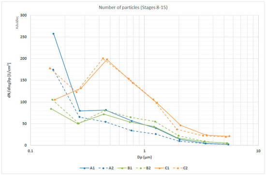 Number of particles emitted (1/cm3) for sampling stages 8 to 15.