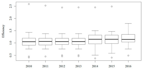 - Charnes, A.; Cooper, W.; Rhodes, E. Measuring the efficiency of decision making units. Eur. J. Oper. Res. 1978, 2, 429–444. [Google Scholar] [CrossRef]