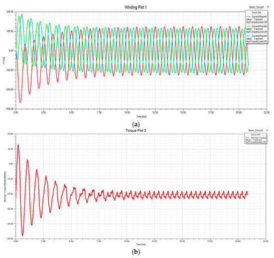 Short circuit behavior: (a) SC current in the fault phases; (b) output torque.