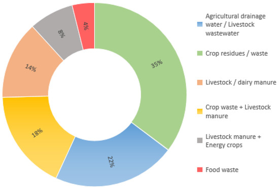 Generally, closed-loop (or circular) agriculture is one of the most promising solutions for facing the resources’ use throughout crop and livestock production processes. Various applications have been developed by recycling water, energy and nutrients from crop and livestock systems and reuse them after required processing in agricultural systems. Concerning the provenance of the resources, the literature focuses on six discrete categories, with the most popular being the crop residues-related which includes 18 references, seconded by wastewater-related which contains 11 (Figure 3). Of course, livestock manure represents an additional category, while there are references that combine more than one of the abovementioned categories, such as various types of manure with crop waste or energy crops. Food waste is referenced in the reviewed papers only in 2 cases. The reuse of food waste for agricultural purposes seems to be relatively low even though it could be a significant source of nutrients for various crops.