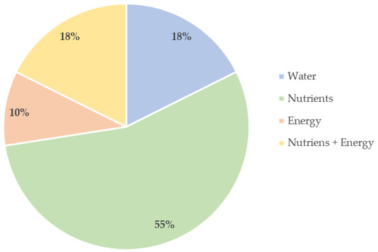 In literature, there are research studies that profoundly target on the whole water-energy-nutrients nexus. The identification of operational and resource inefficiencies in a mango food supply chain may have substantial financial and environmental benefits in real-time when a CE-based redesigning is implemented [122]. Similarly, the potential of circular agriculture is assessed in an individual farm taking into account financial, environmental, and social factors resulting, in the fact that circular agriculture can be achieved mainly based on economic viability [123]. Undeniably, these are only indicative research studies pointing out the linkages between water, energy, and nutrients without implying that the nexus does not exist in the rest of the reviewed studies.