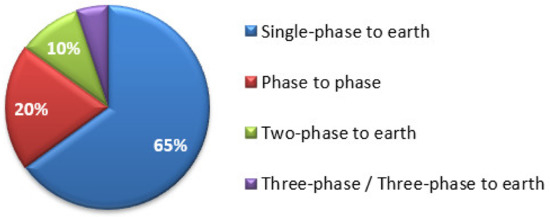 The most common short-circuit type in the electrical power systems are single-phase ones. Their participation in total faults are approximately 57.5% based on [19] or in 65% based on [20]. The rarest short-circuit types (from 0.5 to 5%) are three-phase or three-phase with earth short-circuits. Figure 2 shows statistics of short-circuits in detail. According to these data, in this article, analyses were taken of the typical low-voltage protective devices, in case of single-phase short-circuits.