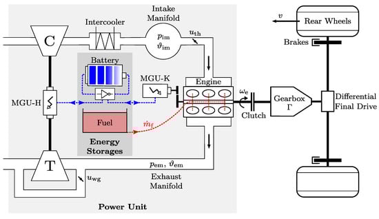 In this section we identify and validate a detailed low-level model of the F1 hybrid electric powertrain. A schematic of the system is shown in Figure 1 and its mathematical mean-value model formulation suited for numerical optimization is mostly based on or inspired by [31,47,57].