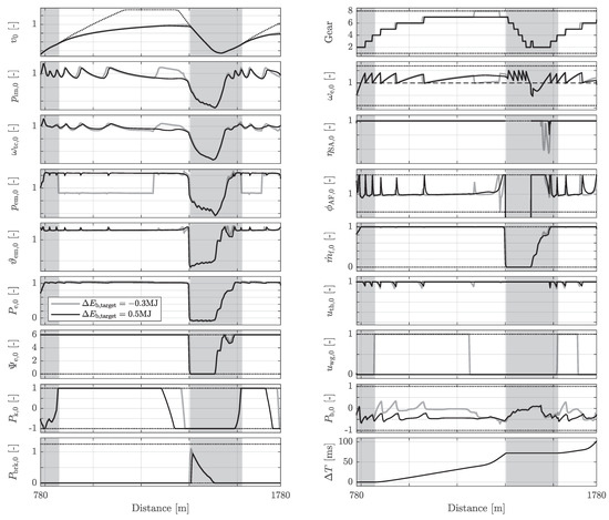 - Ritzmann, J.; Christon, A.; Salazar, M.; Onder, C.H. Fuel-optimal Power Split and Gear Selection Strategies for a Hybrid Electric Vehicle. In Proceedings of the SAE International Conference on Engines & Vehicles, Capri, Italy, 15–19 September 2019. [Google Scholar]